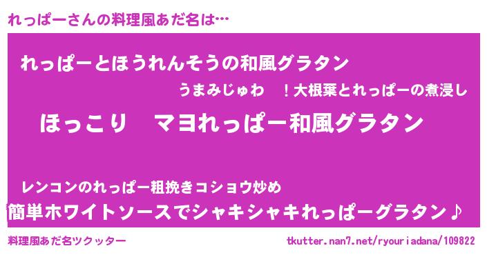 | 意味不明あだ名 | 『住所不定無職れっぱー(81歳)』 |