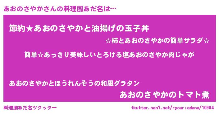 | 意味不明あだ名 | 『永久保存あおのさやか』 |