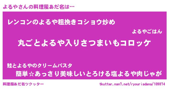 | ヘコむあだ名 | 『よるや(笑)』『つくし』『よる太郎』 |