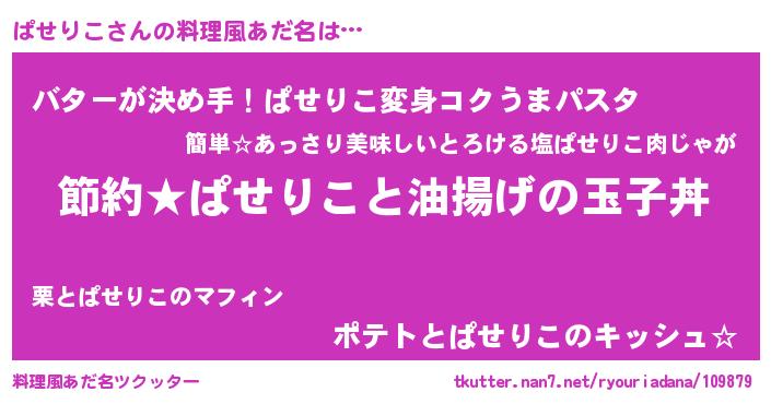 | 男性向けラノベタイトル風あだ名 | 『ぱせりこの憂鬱』 |