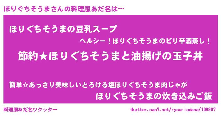| 恥ずかしいあだ名 | 『プリティーほりぐちそうま』『ほりちん』 |