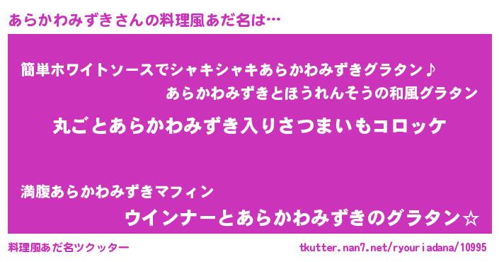 | 意味不明あだ名 | 『住所不定無職あらかわみずき(10歳)』 |