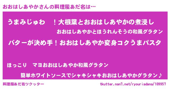 | 女子向けラノベタイトル風あだ名 | 『おおはしあやか恋絵巻』 |