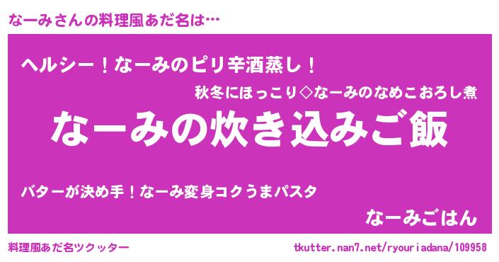 | 意味不明あだ名 | 『自称なーみ』『つくし科なーみ属』 |