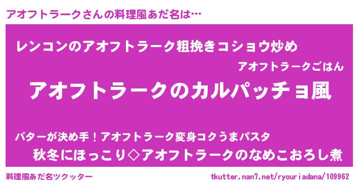 | ヒーロー風カッコイイあだ名 | 『仮面アオダー』『ネオアオフトラーク』 |