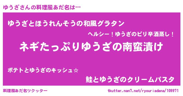 | ヘコむあだ名 | 『ゆうふぇ~』『ゆうを』『なまこ酢』 |