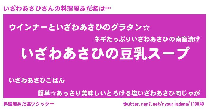 | 意味不明あだ名 | 『とにかく怪しいいざわあさひ』 |