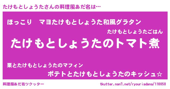 | 胡散臭い通販商品みたいなあだ名 | 『100人中100人が認めたマグネット磁石…その名も「たけもとしょうた」』 |