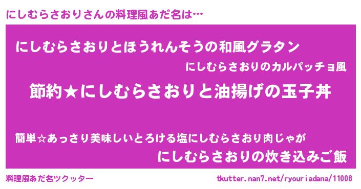 | ヘコむあだ名 | 『にしにー』『にしむらさおり(笑)』 |