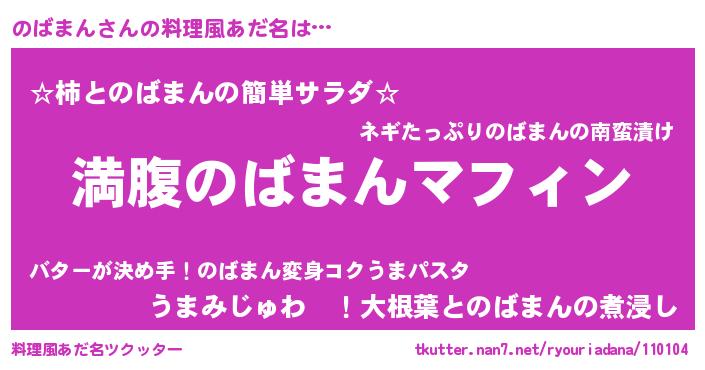 | 男性向けラノベタイトル風あだ名 | 『のばまんという概念が存在しない退屈な世界 』 |
