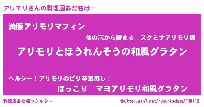 | 胡散臭い通販商品みたいなあだ名 | 『前代未聞の健康食品…その名も「アリモリ」』 |
