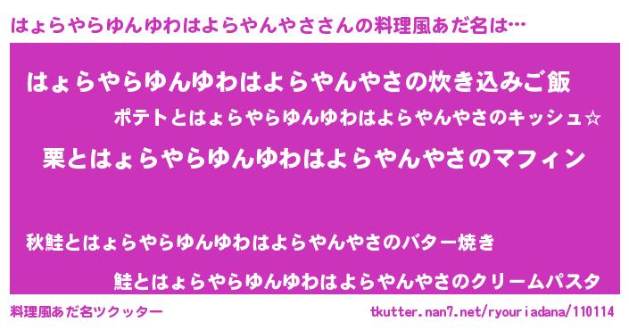 | 男性向けラノベタイトル風あだ名 | 『はたらくはょらやらゆんゆわはよらやんやささま!』 |