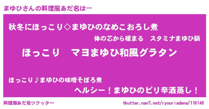 | ヒーロー風カッコイイあだ名 | 『仮面マユダー』『最強戦士マユヒ』 |