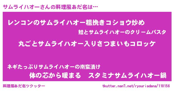 | 男性向けラノベタイトル風あだ名 | 『この素晴らしい世界にサムライハオーを!』 |
