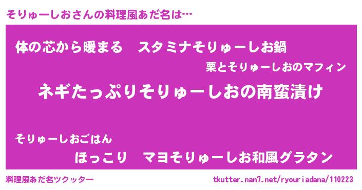 | 胡散臭い通販商品みたいなあだ名 | 『億万長者になれる水晶球…その名も「そりゅーしお」』 |