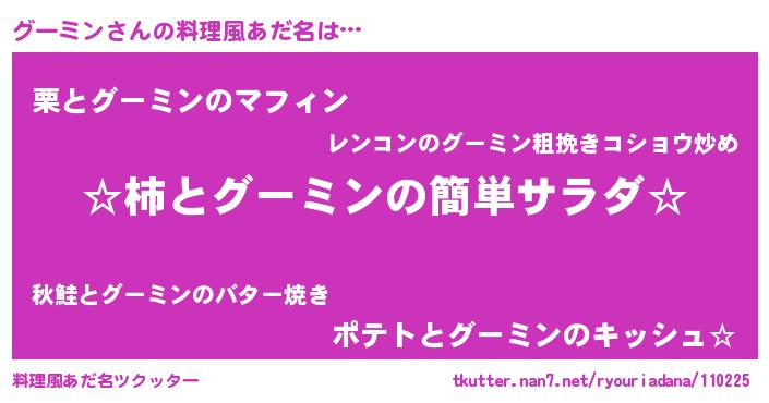 | 胡散臭い通販商品みたいなあだ名 | 『伝統あるサプリメント…その名も「グーミン」』 |