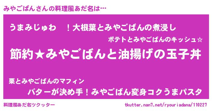 | 意味不明あだ名 | 『ペロリンみやごばん』 |