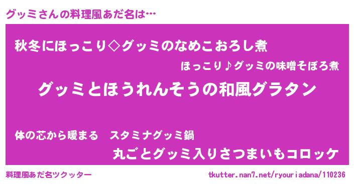 | 意味不明あだ名 | 『ニラ科グッミ属』『ペロリングッミ』 |