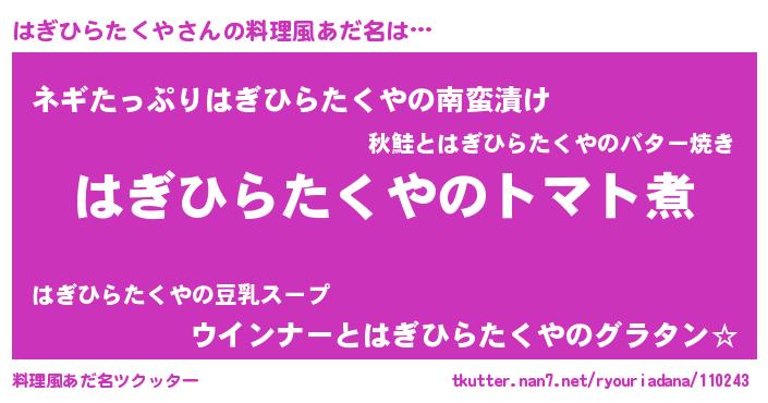 | 胡散臭い通販商品みたいなあだ名 | 『100人中100人が認めたマグネット磁石…その名も「はぎひらたくや」』 |