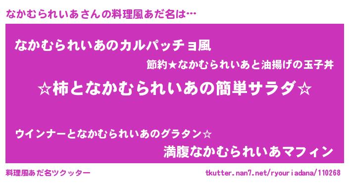 | 恥ずかしいあだ名 | 『なかちん』『プリティーなかむられいあ』 |
