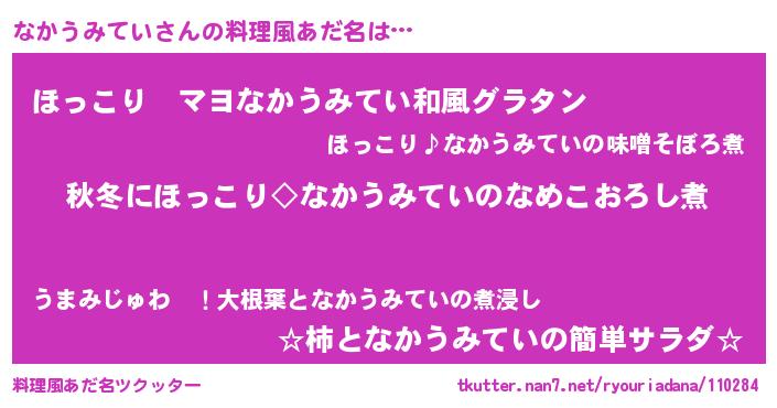 | 男性向けラノベタイトル風あだ名 | 『なかうみていに滅ぼされるだけの簡単なお仕事です』 |