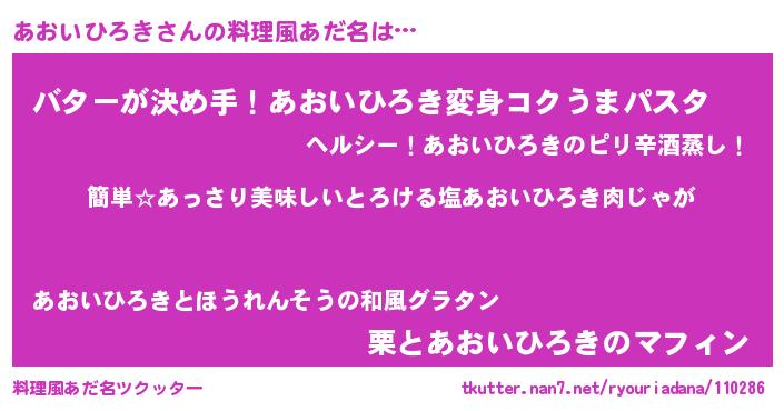 | ヘコむあだ名 | 『あおいひろき(遠い目)』『あおにゅー』 |