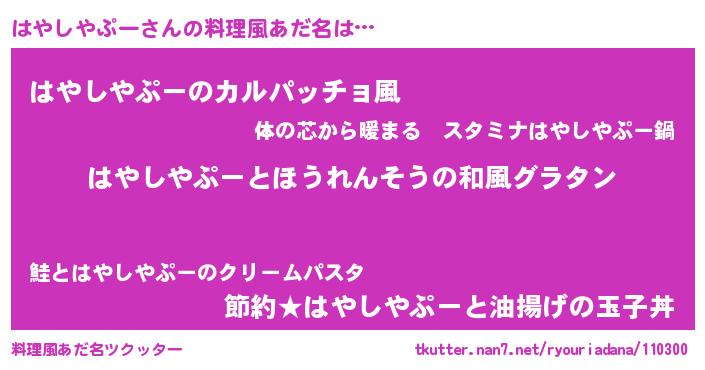 | 欧米人風あだ名 | 『トリンドルはやしやぷー』 |