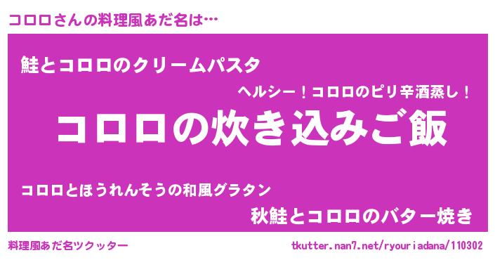 | ヘコむあだ名 | 『コロロ(爆)』『コロっふぃ~』 |