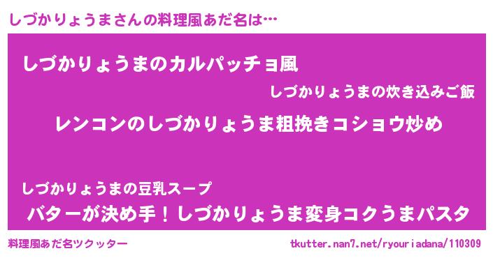 | ヘコむあだ名 | 『しづぷりん』『しづかりょうま(遠い目)』 |