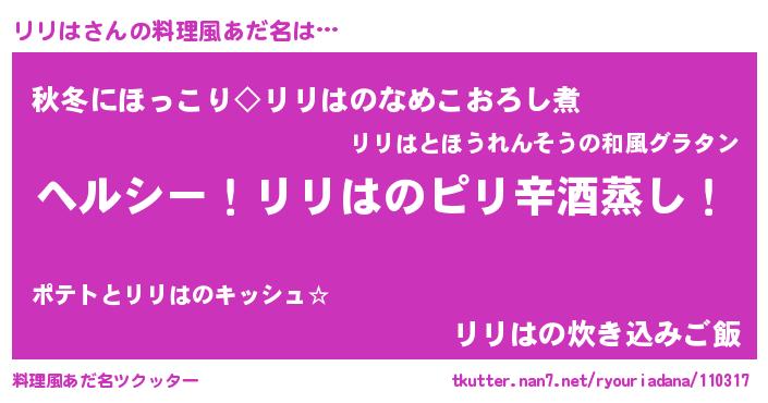 | 意味不明あだ名 | 『自称リリは』『つくし科リリは属』 |