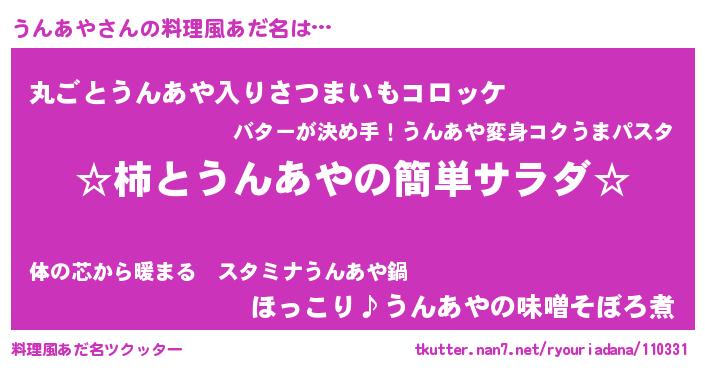 | ヘコむあだ名 | 『うんにー』『牛乳』『うんあや(笑)』 |