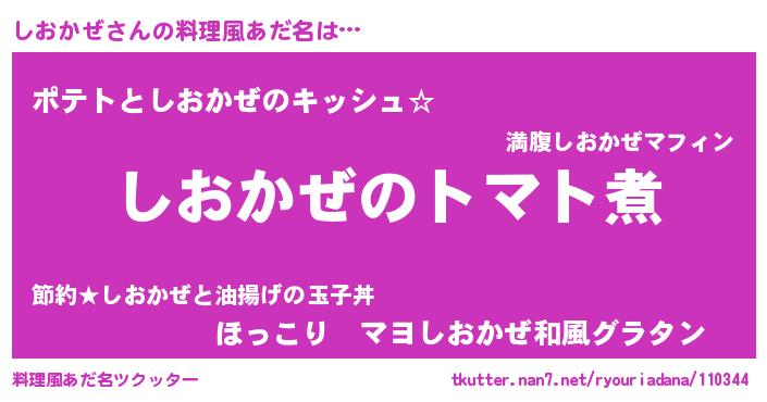 | ヘコむあだ名 | 『しおぷりん』『しおかぜ(苦笑)』 |