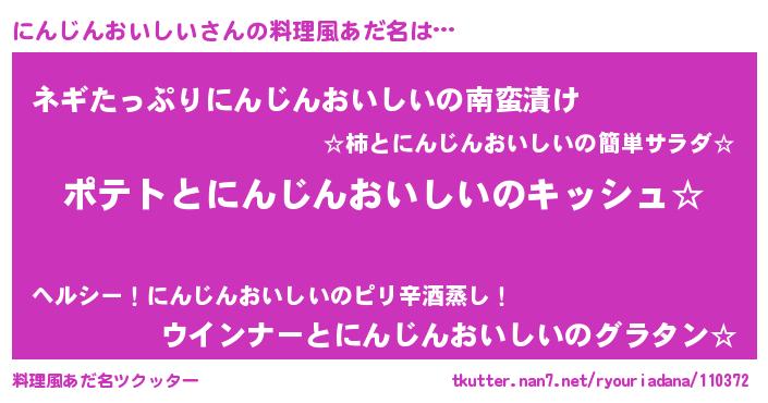 | 男性向けラノベタイトル風あだ名 | 『にんじんおいしいの嫁は女の子じゃないと思った?』 |