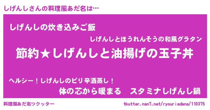 | 意味不明あだ名 | 『ペロリンしげんし』『自称しげんし』 |