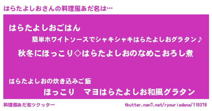 | 男性向けラノベタイトル風あだ名 | 『はらたよしおに滅ぼされるだけの簡単なお仕事です』 |