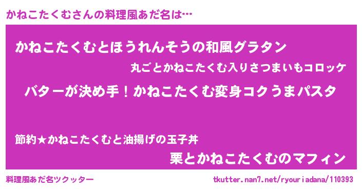 | ヘコむあだ名 | 『かねもー』『かねこたくむ(遠い目)』 |