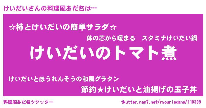 | 欧米人風あだ名 | 『ダニエルけいだい』『マイケルけいだい』 |