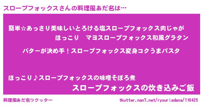 | 女子向けラノベタイトル風あだ名 | 『スロープフォックス恋絵巻』 |
