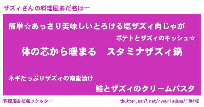 | ヘコむあだ名 | 『つくし』『ザズィ(遠い目)』 |