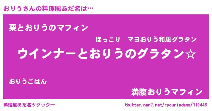 | ヘコむあだ名 | 『なまこ酢』『おりう(苦笑)』 |