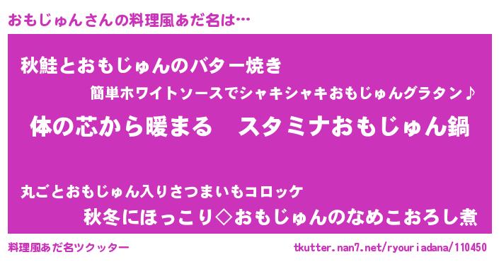 | 女子向けラノベタイトル風あだ名 | 『おもじゅんの雑貨屋さん』 |