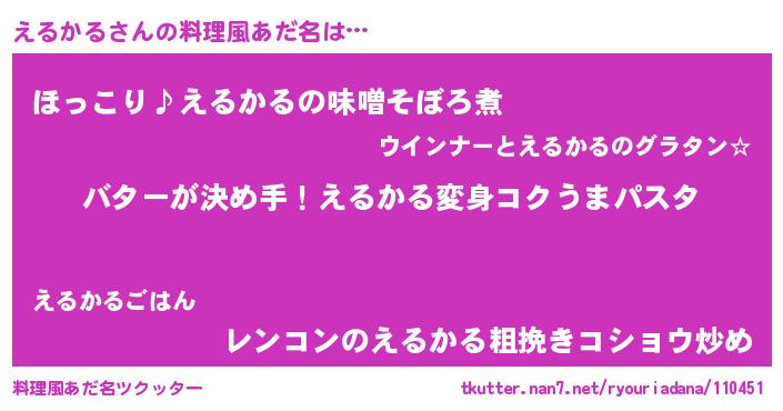 | 女子向けラノベタイトル風あだ名 | 『えるかる恋絵巻』『えるかる伯爵の花嫁』 |