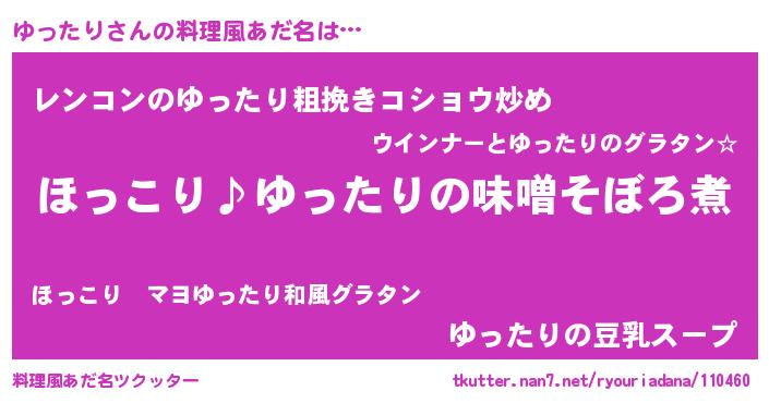 | ピコ太郎風あだ名 | 『ユコ八郎』『ユッ六郎』『ピユ十郎』 |