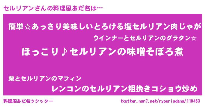 | 恥ずかしいあだ名 | 『プリティーセルリアン』『セルちん』 |