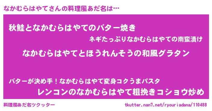 | 可愛いあだ名 | 『なかぷりん』『なかむらはやてママ』 |
