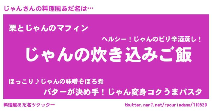 | 女子向けラノベタイトル風あだ名 | 『男装じゃんの憂鬱な任務』『闇のじゃん』 |