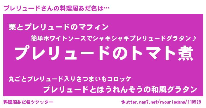 | 女子向けラノベタイトル風あだ名 | 『プレリュード夫妻のなれそめ』 |