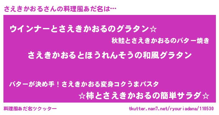 | ヘコむあだ名 | 『酢こんぶ』『さえきかおる(苦笑)』 |