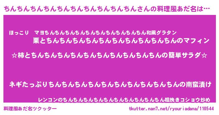 | 恥ずかしいあだ名 | 『チンチンチンチンチンチンチンチンチンチンデラックス』 |