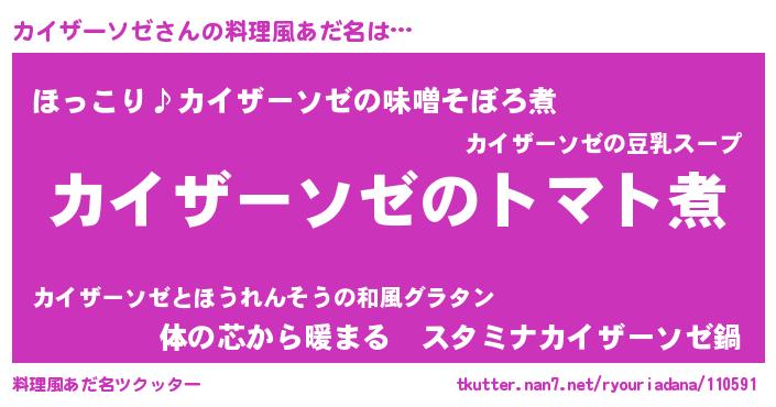 | 女子向けラノベタイトル風あだ名 | 『カイザーソゼ夫妻のなれそめ』 |